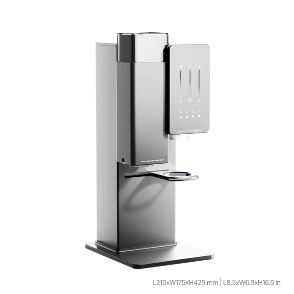 Med kompakte mål på 216 × 175 × 429 mm og elegant design i Galaxy Black eller Cloud Silver passer xBloom Original perfekt i baren, på kjøkkenet eller i resepsjonen.